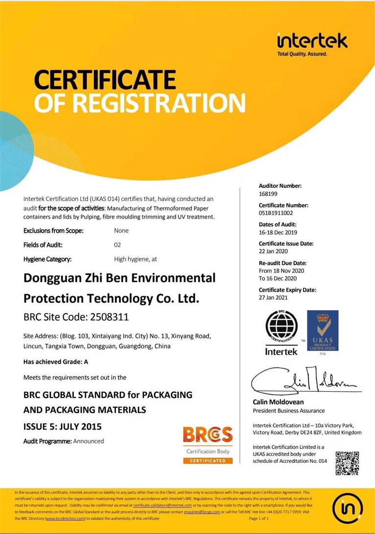 祝東莞市植本環保科技有限公司在創思維驗廠之家專業輔導下通過ITS BRC認證并取得A級證書