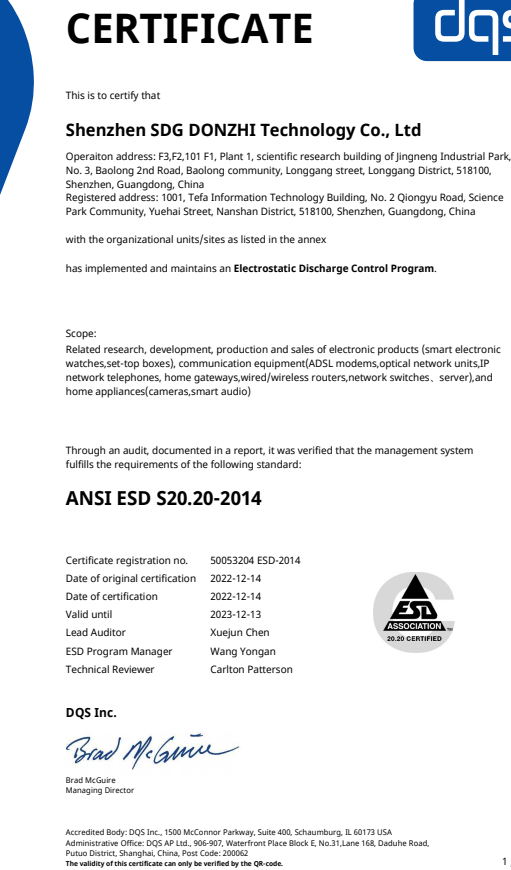 祝賀深圳特發(fā)東智科技有限公司2022年快速通過ESD認(rèn)證